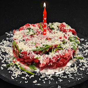 네이버로 미리 예약하시고 방문해주시면 육회로 케이크를 만들어 드리고 있습니다.